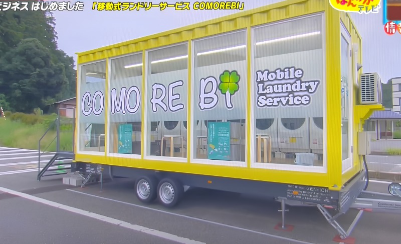 เครื่องซักผ้าแบบบริการตนเองเคลื่อนที่นี้ได้รับการวิจัยและพัฒนาโดยบริษัทขนส่งสินค้าชื่อดังของญี่ปุ่น “ยามาโมโตะทรานสปอร์ต” .